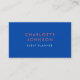 A modern elegant design. Cobalt background. Insert name, job title and address. Ideal for Event Planner, Accountants, Architects, Fashion Professionals, Musicians, Consultants, Office Clerks, Interior Designers, Realtors, Psychologists, Attorneys, Real Estate Agents, Restaurant Professionals, Lawyers, Brokers and Corporate Professionals.