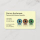 © Sunny Mars Designs. This custom quality optometry horizontal business card template features a set of three irises of an eye. One blue, one brown and one green, lined up horizontally with a shadow and reflection. This business card is perfect for an Optometrist, eye specialists or anyone in the eye health or vision industry or someone who specializes in manufacturing or selling cosmetic contact lenses. Customize it with your own personal details.