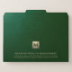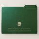 Keep client documents organized with our Professional Financial File Folder. Featuring a brushed gold monogram initial emblem and your company name, address, and contact information in classic golden typography against the green leather print background, this folder combines functionality and refinement for your financial advisory needs.