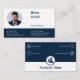 A professional financial planner's white-blue business card offers placeholders in the form of a round logo holder and company name with custom social network symbols to connect. On the front are placeholders for a personalized profile photo in a circular shape. Further, custom text fields add name, contact details, and address. Additionally, customization of font, font size, font color, and color of background and shapes are possible. Should you require assistance or want to discuss a custom design, contact https://t.me/KBMD3signs_chat.