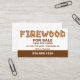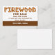 Promote your fire wood business with this easy to customize business card. This bold eye-catching card has the message FIREWOOD FOR SALE with the words FIREWOOD in wood log letters. The rest of the text on this business card can be easily customized with your own information.