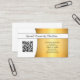 A gold with center flair sets off the background of this business card design that features your QR code. Fill in the template fields or click customize to select a font style, size, and color you like. Be sure to add your QR code on the front. Use the QR code link to send customers to reviews, photos, your website or another important link. And the back in a matching pastel pink leaves ample room for personal handwritten notes.