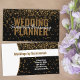 A gold faux glitter over black sets off the background of this business card design featuring template name and title on the front. The back includes a coordinated design and colors with text fields for the business name and details. Fill in the template fields or click customize to select a font style, size, and color you like.