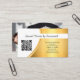 A gold with center flair sets off the background of this business card design that features your QR code on the front and a custom photo on the back. Fill in the template fields or click customize to select a font style, size, and color you like. Be sure to add YOUR QR code on the front and a vertical photo on the back. Use the QR code link to send customers to reviews, photos, your website or another important link.