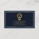 A gold rectangular frame demarcates a dark blue cover against its lighter blue rim. On the left is a large faux gold lightbulb-home logo you can use. To its right you have the business name and a slogan caption option to publicize your services. Near the base lies the contact details.