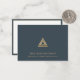 Make a lasting impression with these note cards featuring a sleek professional design and a distinguished gold triangle that can be updated with your logo. Ideal for sending personalized messages and thank-you notes to clients.