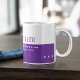 Nice purple (editable color) coffee-mug personalized with your own name and profession (business administration)