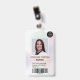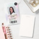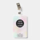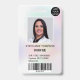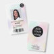 A modern, and professional pastel holographic pearl nacre nurse photo id badge with logo and barcode.