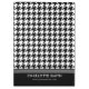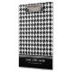 Make a bold statement with this classic style clipboard. A chic design featuring the iconic houndstooth pattern, paired with contrasting stripes. Make it yours by adding a name, a website or other information. A versatile tool for your home or office, that can be used for organizing important papers, displaying paperwork, a useful drawing board on location, and more! The same design and personalized text is repeated on both sides. Printed colors: black and white.