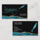 A modern, stylish insurance agent logo business card with calligraphy script typography and feather pen with teal agate background. Ideal for insurance agents, notary, professionals, lawyers, loan agents, mortgage agents....