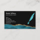 A modern, stylish insurance agent logo business card with calligraphy script typography and feather pen with teal agate background. Ideal for insurance agents, notary, professionals, lawyers, loan agents, mortgage agents....