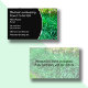 Professional Landscaper unique business cards with image of landscaping in the background on both sides and a slogan on the back asking for referrals.