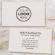 Create professional business cards to promote your brand. This simple, stylish template can be personalized with your company logo, name, job title, telephone, address, website, email and social media. The text is fully editable, allowing you to customize it to fit your business needs. It features sleek, modern typography with a minimalist aesthetic. Business cards are a powerful marketing tool that help establish your brand identity, delivering immediate and accurate contact details, and make a memorable first impression on prospective clients. Printed colors: warm, off-white and black.