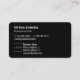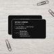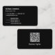 The design is of a professional styled business card, presented in black and white, with white fonts on black background. Customization includes the holder's personal information and business details. Personalize the card by adding - as applies - the name and credentials, professional title, telephone and cell numbers, email address, business logo, business name, physical address, and website URL. Presented on the back side of the card are the business QR code and tagline (as applies).