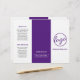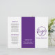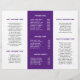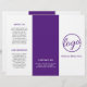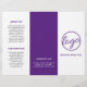 Professional and modern trifold brochure with a simple yet elegant design in purple and white. The front panel has your logo and business name. The back panel has your contact information and the inner fold panel has two headers and text boxes. Use the template to add information about your business on the outer panels and a price list / service menu in the middle panel. DESIGN TIP: You may change the text and background to any color you wish by clicking the "customize" button.