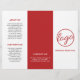 Professional and modern trifold brochure with a simple yet elegant design in red and white. The front panel has your logo and business name. The back panel has your contact information and the inner fold panel has two headers and text boxes. Use the template to add information about your business on the outer panels and a price list / service menu in the middle panel. DESIGN TIP: You may change the text and background to any color you wish by clicking the "customize" button.