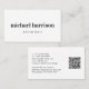 Professional business card featuring your name front and center in bold minimal modern typography and your profession, job title or company underneath in simple typography. On the back, add your contact information and input a URL address to create a scannable QR code connected to your website, portfolio, social media profile, or any other platform that showcases your work, making it easy for customers and clients to explore your expertise.