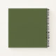 Modern notebook features a minimal design in a olive color palette with black accents. Custom monogram initials presented in the lower right hand corner in stylish simple classic font.