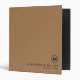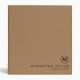 Modern professional binder features a minimal design in a tan and black color palette. Custom name presented in the lower right-hand corner in stylish simple font with a complimentary minimal monogram medallion.