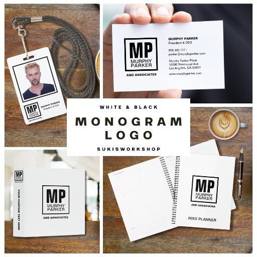 Custom make your own photo employee badges with this professional monogrammed logo. Logo has a modern, simple and bold design. It is versatile and easy to customize and transfer on to other office and promotional products. It can also be used as a personal monogram by omiting the type of business or tag line at the bottom.