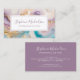 This unique business card features abstract watercolor design in various shades of purple, gold and teal with your name and job title on the front, and contact information on the back. Perfect for business, marketing, and contact requirements.