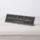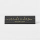 This desk name plate features name in gold modern script font style and title in gold modern sans serif font style on black background.