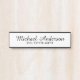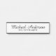 This hanging name plate features name in black modern script font style and title in black professional serif font style on white background.
