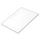 Professional Modern notepad featuring name in gold modern script font style with custom text in gold modern sans serif font style on white background.
