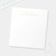 Professional Modern notepad featuring name in gold modern script font style with custom text in gold modern sans serif font style on white background.