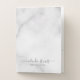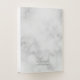Professional Modern Presentation Folder featuring name in grey modern script font style with profession in grey modern sans serif font style with contact information on the back of the folder, on white marble background.