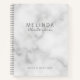 Professional Modern Notebook featuring name in grey modern sans serif font style and last name in grey modern calligraphy font style on white marble background.