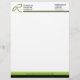 © Socialite Designs. Professional business letterhead design incorporates a two-color header and footer, and a dark green header monogram. The green and black line in the header is movable and can be re-sized. Our design matches the Professional Monogram business cards.