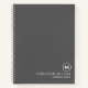 Professional custom large spiral notebook features a simple monogrammed design in a classic gray and white color palette. Personalized name presented in the lower right-hand corner in stylish simple font with a complimentary minimal monogram medallion.