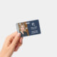 Design created with consultants, accountants, and other professional service providers in mind. This design is elegant and classy and will enhance your firm's corporate image. The navy blue textured background will create a simple and cohesive executive business look; whilst the curvy yet elegant font will add a modern and approachable feel to your brand. Customize this employee badge with your business initials, business name, type of business and employee's name and professional title on the front. On the back, complete design by adding your business contact information and any additional information you may need.