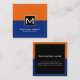Professional Monogram Modern Dark Blue Orange Square Business Card