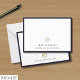 Make a lasting impression with these note cards featuring a sleek design and a distinguished gold compass emblem that can be customized with your logo and branding. Ideal for sending personalized messages and thank-you notes to clients.