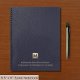 Elevate your note-taking experience with our Professional Navy Blue Gold Monogram Spiral Notebook. The brushed gold monogram initial, paired with your company name, address, and contact information, gracefully adorns the cover against a backdrop of rich faux blue leather print. This exquisite design not only adds a touch of elegance to your work but also enhances your professional image. Whether you're jotting down ideas, attending executive meetings, or presenting to employees or clients, this notebook offers style and functionality in one. Ideal for consultants and consulting businesses, this notebook makes a lasting impression while keeping your notes organized and sophisticated.