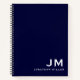 Modern notebook features a classic navy blue and white color palette. Custom name presented in the lower right-hand corner with complimentary monogram initials in bold classic block typography.