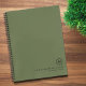 Modern notebook features a minimal design in an oliver green and black color palette. Custom name presented in the lower right hand corner in stylish simple font with a complimentary minimal monogram medallion.