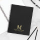Professional notebook features custom monogram, name and text in gold classic serif font style on black background.
