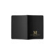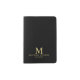 Professional Passport Holder features custom monogram, name and text in gold classic serif font style on black background.