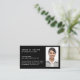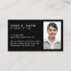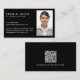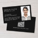 Minimal and elegant professional black business card featuring your photo and your name, title and contact information (such as email, telephone numbers, firm name and mailing address) in clean, simple and modern white lettering. On the back, input a URL address to create a scannable QR code linked to your website, social media profiles, or any other platform that showcases your work, making it easy for others to explore your expertise, and add additional text or leave blank.