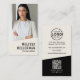 This sleek and simple vertical business card is perfect for corporate brands, small businesses, consultants, freelancers, or any professional looking for a modern, clean aesthetic. The front of the card features your photo, company logo, name, and title or business name, creating a professional yet personalized touch. On the back, you'll find your contact information, a scannable QR code, and social media icons with the phrase "Connect with us!" to encourage easy engagement. The card’s bold typography and customizable black and white color scheme give it a minimal and modern look, making it versatile for any brand. Personalize your own today for a stylish and professional impression! Professional Photo QR Code Company Your Logo Vertical Business Card Simple Minimalist