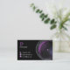 Professional Photographer Camera Lens Business Card. With Purple accents.