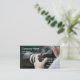 Photographer business card with photo of a person holding a very large camera lens and camera typically used by a professional photographer. A business card designed for a photographer, videographer, event planner, or wedding photography.