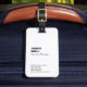 Vertical white background modern, elegant luggage tag. This template can be customized to meet all professional occupations.