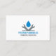 A blue logo of a water drop with a wrench silhouette is combined with your name or business name on this plumbing or water service business card template.
