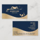 Professional business card design - Silver pressure washing gun and glitter water spray effect for your pressure washing services, with navy gold background and gold details