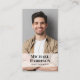 Make a lasting impression with this unique business card featuring your photo overlayed with your name in bold and trendy typography and your title in simple modern lettering. On the back, upload your logo, personalize your contact information and input your url web address to create a scannable QR Code connected to your website, portfolio, social media profile, or any other platform that showcases your work, making it easy for customers and clients to explore your expertise.