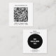 This professional minimal style square business card has black text on white. The front side has a customizable QR code that you can replace with your own. Above that is text to enter your website address and at the bottom you can enter your business address. On the back of this modern stylish card, is a round space to add your logo or a photo of yourself or your business. Personalize the text at the top with your name and title or company, and at the bottom add your phone number, email and social media handle. Feel free to enter any custom text in the suggested fields.